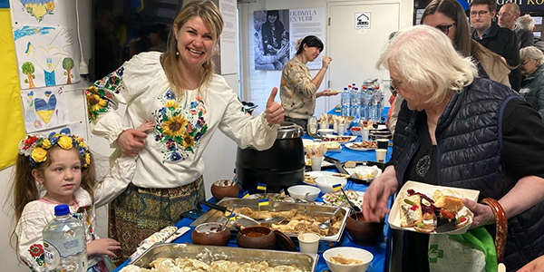 | Bewoners van de Oekraïne-opvang in Rosmalen en omwonenden hebben tijdens een goed bezochte open dag van de opvang kennis met elkaar gemaakt. Met zelfbereide hapjes uit de Oekraïense keuken werd er heerlijk gegeten. Resultaat: een hele lijst met potentiële taalmaatjes, aanbiedingen om voorzieningen beschikbaar te stellen en veel nieuwe verbindingen. |