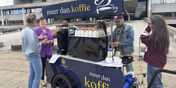 Hier bij het provinciehuis is het een eenmalige ‘pilot’ om mensen kennis te laten maken met de koffiekar in de hoop dat de kar ingehuurd wordt voor evenementen in en rond Den Bosch. Meer weten over de koffiekar of deze meteen reserveren voor jouw evenement? Mail naar letteke@proud2participate.com.
